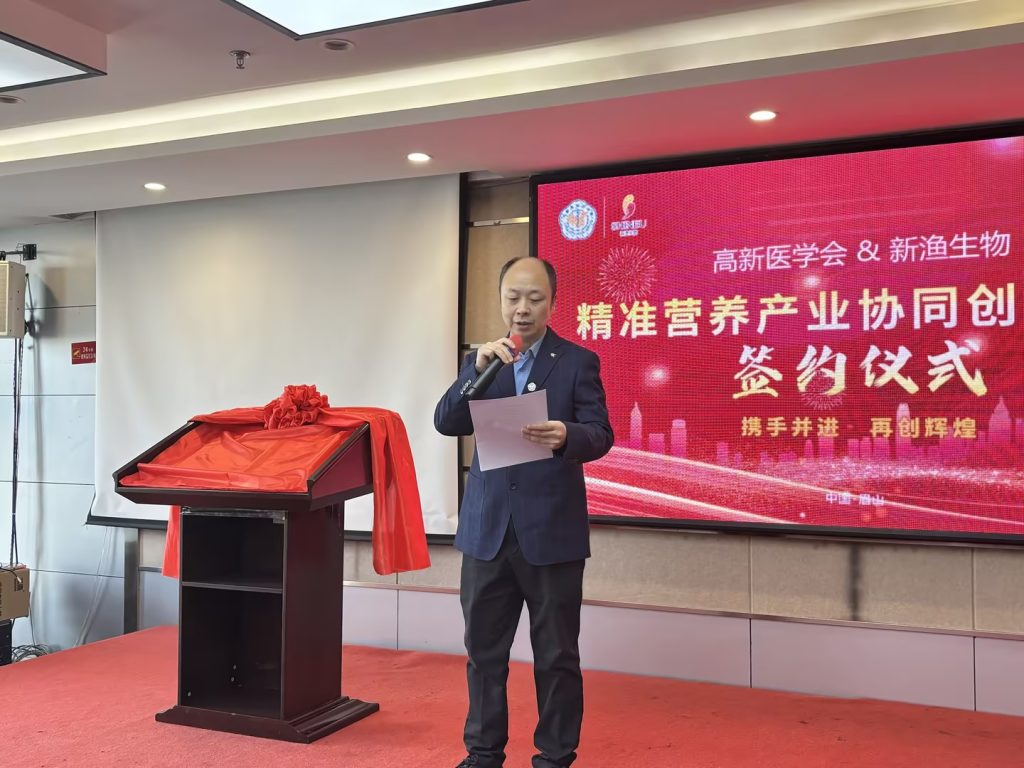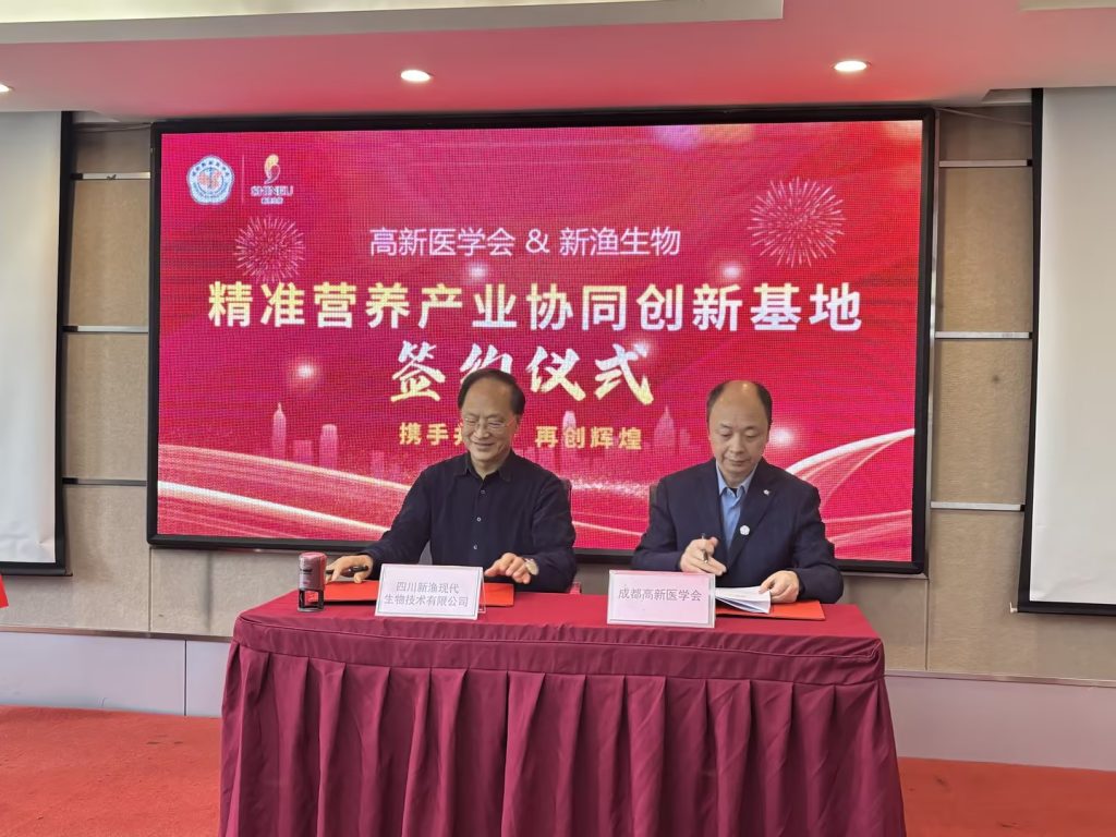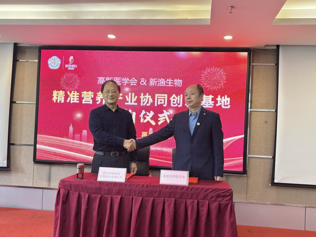 簽約儀式上,成都高新醫(yī)學會醫(yī)工融合協(xié)同創(chuàng)新中心馮懷志主任和四川新漁現(xiàn)代生物技術(shù)有限公司董事長馬建中分別致辭,表達了雙方對此次合作的高度重視和美好愿景,隨后雙方代表共同簽署了合作協(xié)議。簽約儀式結(jié)束后還舉行了成都高新醫(yī)學會精準營養(yǎng)產(chǎn)業(yè)協(xié)同創(chuàng)新基地的授牌儀式。
