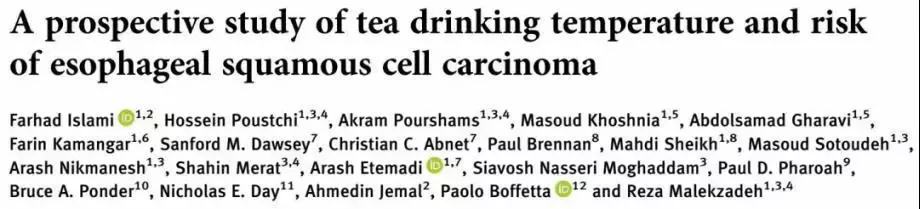 2019年3月,一項(xiàng)發(fā)表在《國際癌癥雜志》(International Journal of Cancer)上的超大規(guī)模研究《食管鱗狀細(xì)胞癌茶飲料溫度與風(fēng)險(xiǎn)的前景研究》,又一次實(shí)錘認(rèn)證這個(gè)理論。
